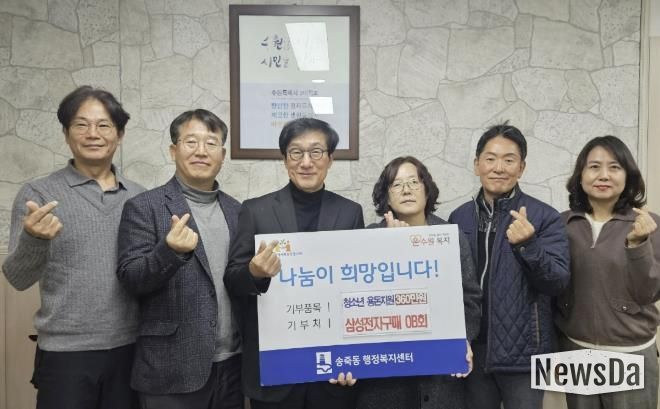 뉴스다 최광묵 기자 | 수원시 장안구 송죽동은 지난 15일 삼성전자 구매OB회와 함께하는 ‘청소년 용돈지원사업’ 후원금 전달식을 개최했다고 밝혔다.
