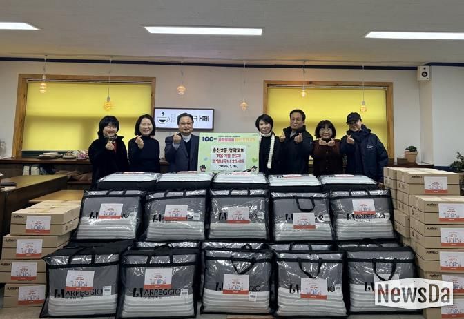 뉴스다 최광묵 기자 | 의정부시 송산2동주민센터는 1월 15일 성약교회가 겨울이불 및 과일바구니 25세트를 기탁했다고 밝혔다.