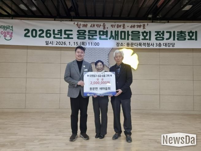 뉴스다 최광묵 기자 | 양평군 용문면은 지난 15일 용문면새마을회가 새해를 맞아 지역 내 어려운 이웃을 돕기 위한 성금 200만 원을 기탁하며 따뜻한 나눔을 실천했다고 밝혔다.