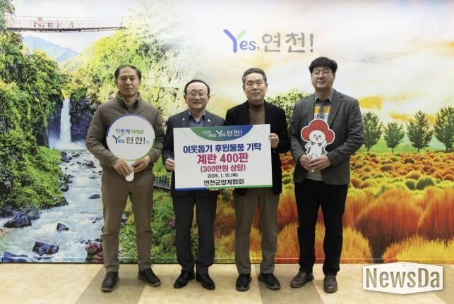 뉴스다 최광묵 기자 | 연천군양계협회는 지난 15일 연천군청을 방문해 지역 내 취약가정을 지원하기 위해 계란 400판(300만원 상당)을 연천군가족센터에 후원물품으로 지정 기탁했다.