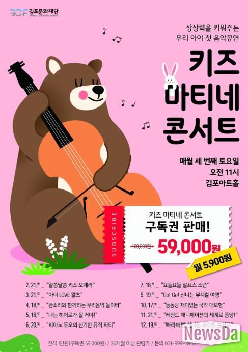 뉴스다 최광묵 기자 | (재)김포문화재단은 2025년도 객석점유율 99%, 2024~2025 2년 연속 관객만족도 98점을 달성한 '키즈 마티네 콘서트'를 2026년에도 연속하여 개최한다고 밝혔다.