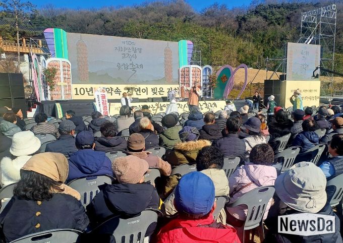 뉴스다 최광묵 기자 | 함양군의 겨울 대표 축제인 ‘제10회 지리산함양 고종시 곶감축제’가 16일 함양 상림 고운광장 일원에서 개막했다.