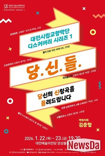 뉴스다 최광묵 기자 | 대전시립교향악단은 22일과 23일 오후 7시 30분, 대전예술의전당 앙상블홀에서 디스커버리 시리즈1 <당.신.들. - 당신의 신청곡을 들려드립니다>를 무대에 올린다.