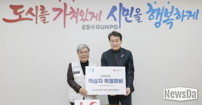 뉴스다 최광묵 기자 | 군포시는 16일 2026년도 적십자 특별회비 100만원을 대한적십자사 경기도지사에 전달하며 새해 따뜻한 나눔의 시작을 알렸다.