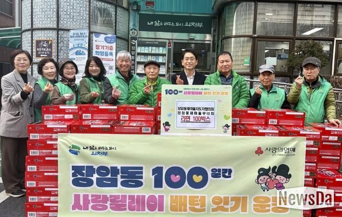 뉴스다 최광묵 기자 | 의정부시 장암동주민센터는 1월 15일 장암동 새마을지도자협의회·새마을부녀회가 겨울철 어려운 이웃들을 위해 라면 100상자를 전달하며 ‘100일간 사랑릴레이 배턴 잇기’에 동참했다고 밝혔다.