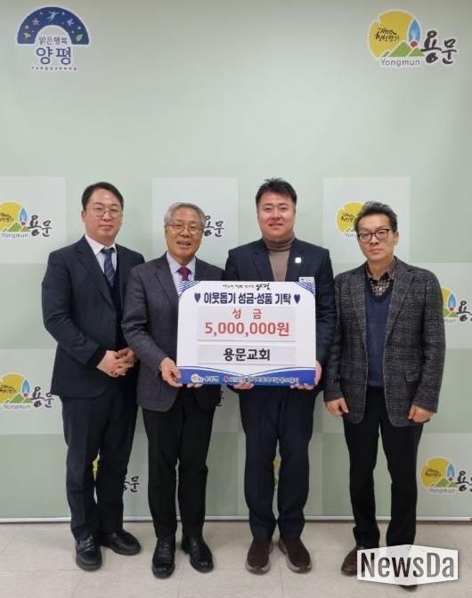뉴스다 최광묵 기자 | 양평군 용문면은 지난 16일 용문교회가 관내 어려운 이웃을 돕기 위해 이웃돕기 성금 500만 원을 기탁했다고 밝혔다.