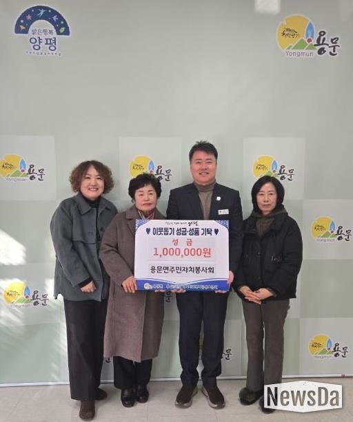 뉴스다 최광묵 기자 | 양평군 용문면 주민자치봉사회은 지난 16일 용문면 내 어려운 이웃을 돕기 위해 성금 100만 원을 기부하며 따뜻한 나눔을 실천했다.