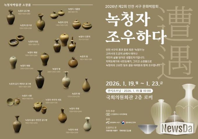 ‘제2회 서구문화박람회- 녹청자 조우하다’ 전시는 2026년 1월 19일 10시 개막을 시작으로 1월 23일 오후 2시까지 진행되며 무료 관람할 수 있다.