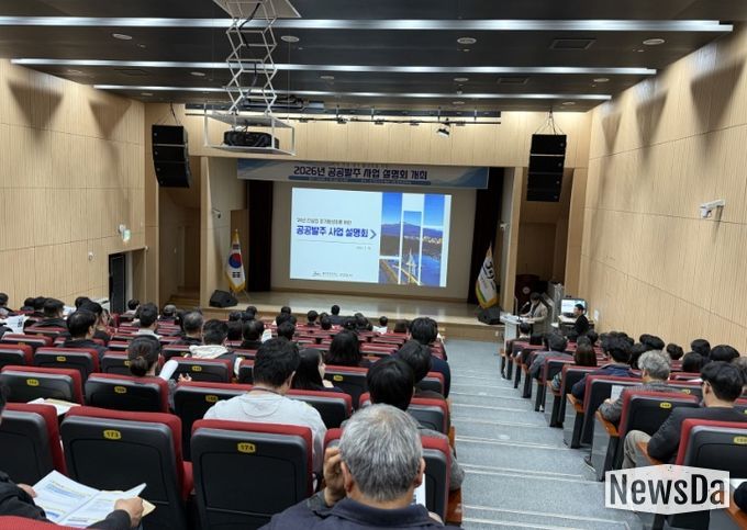 뉴스다 최광묵 기자 | 서귀포시에서는 침체된 건설경기 활성화의 발판을 마련하고자 대한건설협회(전문포함) 회원 및 건설업 면허 등록업체 종사자 등 100여 명이 참석한 가운데 ‘'26년도 공공발주 사업 설명회’를 1월 16일 14시에 서귀포시청 별관 2층 문화강좌실에서 개최했다.