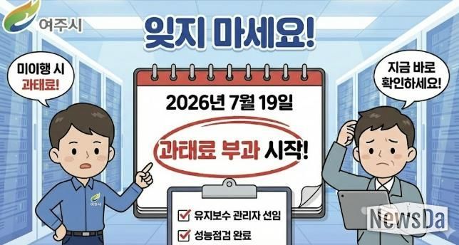 뉴스다 최광묵 기자 | 여주시는 건축물 내 정보통신설비의 안전성 확보와 성능 유지를 위한 ‘정보통신설비 유지보수제도’의 과태료 부과 계도기간이 2026년 7월 18일까지 6개월 추가 연장됐다고 밝혔다.