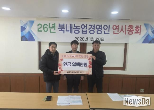 뉴스다 최광묵 기자 | 여주시 북내면 후계농업경영인회는 지난 20일, 북내면 행정복지센터를 방문해 관내 어려운 이웃을 위한 이웃돕기 성금 100만 원을 전달했다.