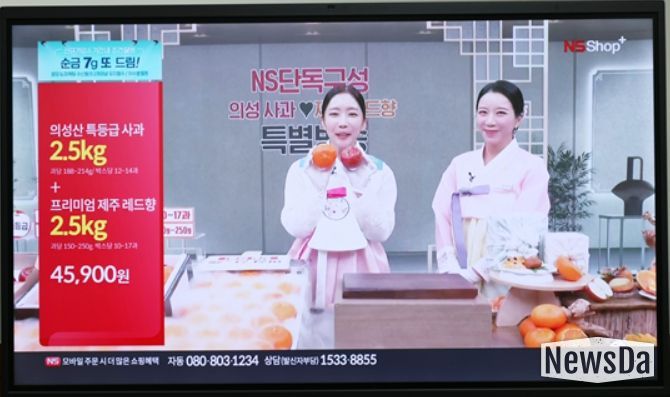 이날 방송에서는 제주시 프리미엄 레드향 2.5kg과 의성군 특등급 사과 2.5kg을 한 세트로 구성해 전국 소비자에게 선보였다.
