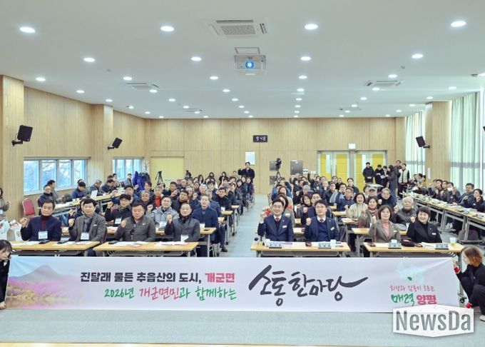 이어 2026년 개군면의 도약을 위한 향후 추진 계획으로 △개군 목욕탕(거점활성화센터) 운영 △향리천 교량과 앙덕–하자포 간 자전거길 연계 △추읍산 진달래 군락지 조성 등을 제시했다. 자전거 특구 조성, 관광자원화, 주민 밀착형 복지시설 확충을 핵심으로 한 정책 방향을 주민 눈높이에 맞춰 설명해 큰 관심을 받았다.