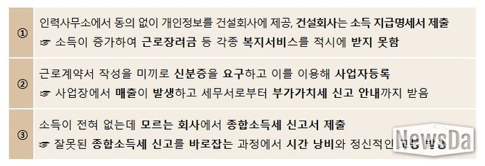 그간 나도 모르는 사이에 근무하지도 않은 회사에서 소득 지급명세서가 제출되는 등 명의도용 피해가 발생하면 생업으로 바쁜 피해자들이 스스로 해결해야 했다.