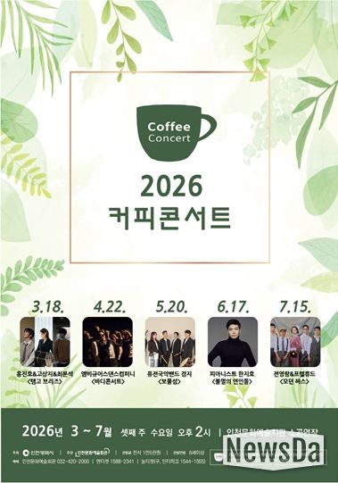 뉴스다 최광묵 기자 | 인천문화예술회관(관장 홍순미)이 간판 브랜드 공연 〈커피콘서트'의 2026년 상반기 출연진을 공개한다.