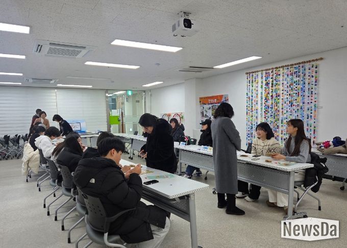뉴스다 최광묵 기자 | 광명시 광명5동 청소년지도협의회는 26일 광명5동 행정복지센터에서 관내 청소년 20여 명과 함께 ‘손뜨개 카드지갑 만들기’ 체험 행사를 마쳤다.