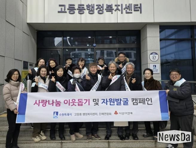 뉴스다 최광묵 기자 | 수원시 팔달구 고등동 행정복지센터와 고등동 단체연합회는 지난 1월 26일, 지역 내 다양한 복지자원을 발굴해 이웃돕기로 연계하기 위한 사랑나눔 이웃돕기 및 자원발굴 캠페인을 실시했다.