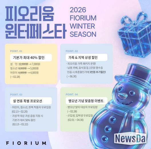피오리움 관계자는 “새해와 설 명절을 맞아 시민과 관광객들이 부담 없이 문화예술을 누릴 수 있도록 윈터페스타를 비롯한 다양한 혜택을 마련했다”라며, “프로모션별 대상과 필수 지참 증빙서류가 상이하니 방문 전 공식 SNS 및 전화 문의를 통해 혜택을 놓치지 마시길 바란다”고 전했다.