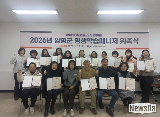 뉴스다 최광묵 기자 | 양평군은 26일 평생학습센터에서 ‘2026년 양평군 평생학습매니저 위촉식’을 성황리에 개최했다.
