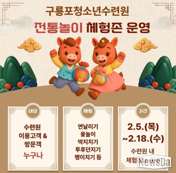 구룡포청소년수련원 관계자는 “명절 기간 수련원을 찾는 청소년과 가족들이 전통놀이를 통해 즐거운 추억을 만들고, 우리 문화의 가치를 자연스럽게 체험할 수 있도록 이번 프로그램을 준비했다”며, “앞으로도 지역사회와 연계한 체험 중심 프로그램을 지속적으로 확대해 나가겠다”고 전했다.