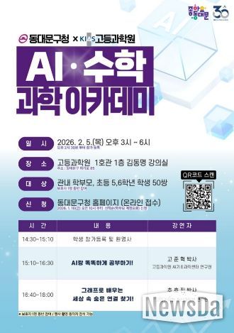 뉴스다 최광묵 기자 | 서울 동대문구가 겨울방학을 맞아 홍릉에 자리한 고등과학원(KIAS)과 손잡고 ‘AI·수학 과학아카데미’를 연다. 아이 혼자 ‘학원’으로 향하는 대신, 부모와 함께 강연장을 찾아 같은 내용을 듣고 집으로 돌아가는 길에 자연스럽게 대화를 이어가게 하는 ‘가족 소통형’ 프로그램이다.