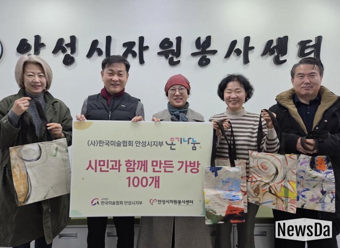 뉴스다 최광묵 기자 | 안성시자원봉사센터는 지난 27일, 한국미술협회 안성시지회로부터 시민들이 직접 참여하여 제작한 에코백을 100개를 전달받았다.