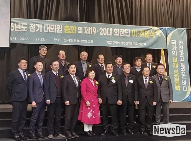 뉴스다 최광묵 기자 | (사)한국수산업경영인 중앙연합회는 지난 1월 27일 대전 호텔 선샤인 2층 컨벤션홀에서 제19·20대 회장단 이·취임식을 개최했다.
