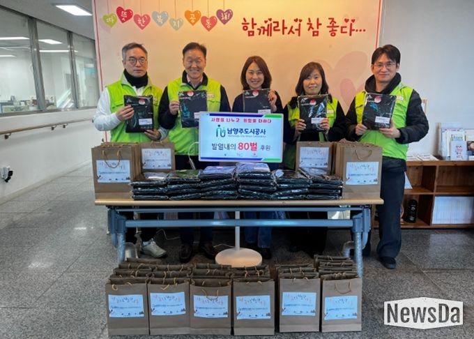 뉴스다 최광묵 기자 | 남양주시는 지난 28일 남양주도시공사가 혹한기 관내 취약계층 아동과 어르신들의 따뜻한 겨울나기를 돕기 위해 동부희망케어센터에 발열내의 80벌을 기탁했다고 30일 밝혔다.