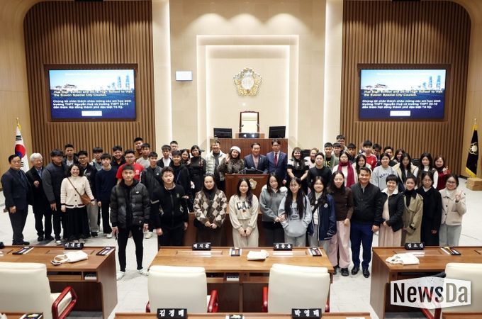 뉴스다 최광묵 기자 | 수원특례시의회는 1월 30일, 베트남 하노이 응우옌후에 고등학교와 25-10 고등학교 학생 50여 명과 학부모들이 참여한 의회 견학 프로그램을 진행했다.