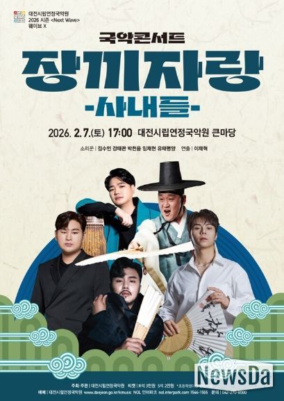 뉴스다 최광묵 기자 | 대전시립연정국악원(원장 오병준)은 병오년(丙午年) 붉은 말의 해를 말의 뜨거운 역동성을 닮은 남성 소리꾼들이 함께하는 2026 시즌 오프닝 국악콘서트〈장끼자랑 – 사내들〉을 오는 2월 6일 오후 5시, 국악원 큰마당에서 개최한다.