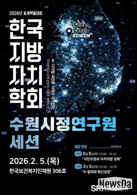 뉴스다 최광묵 기자 | 수원시정연구원은 오는 2월 5일(목) 충북 청주 오송 한국보건복지인재원에서 열리는 2026년 한국지방자치학회 동계학술대회에서 수원시의 대표 혁신 정책과 미래 성장 전략을 주제로 한 세션을 개최한다고 2월 2일 밝혔다.