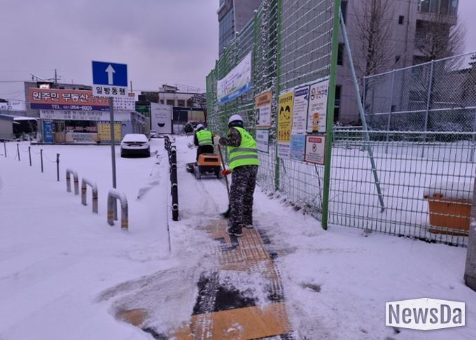 뉴스다 최광묵 기자 | 용인특례시는 2일 학생 안전을 확보하기 위해 전국 최초로 구축한 ‘맞춤형 학교 제설지도’를 기반으로 통학로 제설을 신속하게 완료했다고 밝혔다.