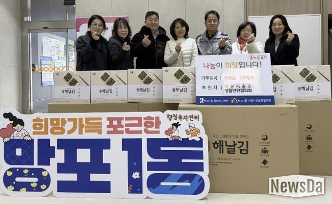 뉴스다 최광묵 기자 | 수원시 영통구 망포1동은 지난 2일, 태장파출소 생활안전협의회가 어려운 이웃에게 전달해 달라며 조미김 50박스를 후원했다고 밝혔다.