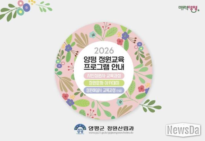 뉴스다 최광묵 기자 | 양평군은 올해 제14회 경기정원문화박람회 개최를 앞두고, 특별 신설 교육과정을 포함한 2026년 정원교육 운영계획을 발표했다. 양평군 정원교육은 △시민정원사 △정원문화아카데미 △정원해설사 등 세 가지 분야로 운영된다.
