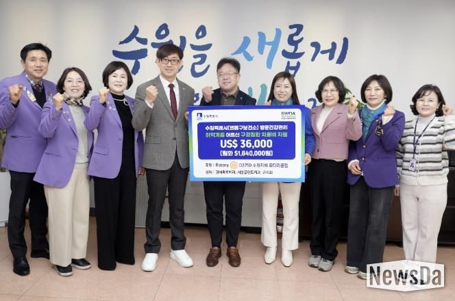 뉴스다 최광묵 기자 | 국제로타리3750지구 수원지해로타리클럽이 “취약계층 어르신 구강 질환 치료에 사용해 달라”며 수원 영통구보건소에 후원금 3만 6000달러(5184만 원)를 전달했다.