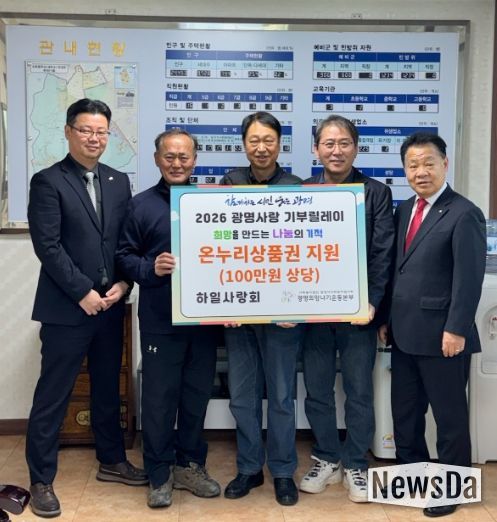뉴스다 최광묵 기자 | 광명시 하안1동 하일사랑회는 지난 2일 설 명절을 맞아 관내 저소득 20가구에 온누리상품권 100만 원(가구당 5만 원)을 전달했다.
