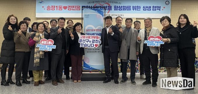 뉴스다 최광묵 기자 | 강진읍사무소가 지난달 29일 광주 광역시 광산구 송정1동과 고향사랑기부제 상호 협약식을 가졌다.