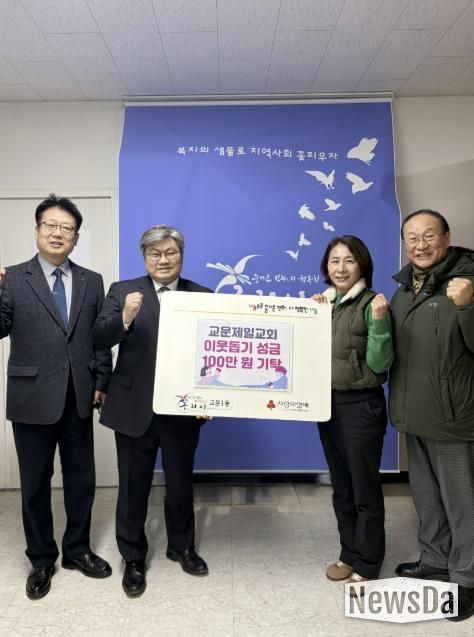 뉴스다 최광묵 기자 | 구리시 교문1동 행정복지센터는 설 명절을 맞아 지난 2월 3일, 교문제일교회로부터 이웃돕기 성금 100만 원을 기탁받았다.
