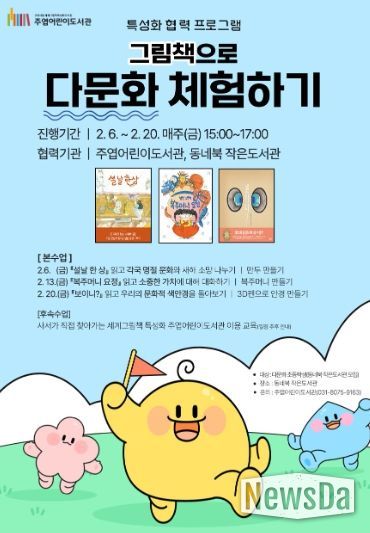 뉴스다 최광묵 기자 | 고양특례시 주엽어린이도서관은 겨울방학을 맞아 다문화 초등학생을 대상으로 특성화 협력 프로그램 ‘그림책으로 다문화 체험하기’를 운영한다.
