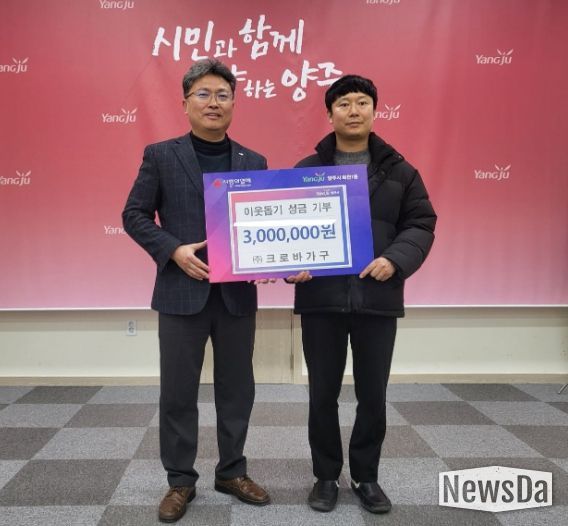 뉴스다 최광묵 기자 | (주)크로바가구는 지난 3일 겨울철을 맞아 지역 내 취약계층과 소외된 이웃을 돕기 위해 성금 300만 원을 회천1동 행정복지센터에 전달했다.