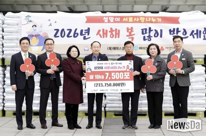 재단법인 에이스경암은 2월 5일 성남시에 2억1375만원 상당의 쌀 7500포대(10㎏ 들이)를 기탁했다.