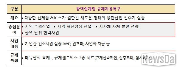 뉴스다 최광묵 기자 | 중소벤처기업부는 6일 비수도권 광역자치단체를 대상으로 ’26년도 ‘광역연계형 규제자유특구’의 신규 지정을 위한 특구 후보과제를 공모한다고 밝혔다.