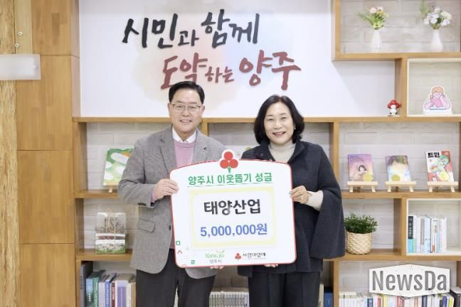 뉴스다 최광묵 기자 | 양주시가 지난 5일 태양산업으로부터 이웃돕기 성금 500만 원을 기탁받았다.
