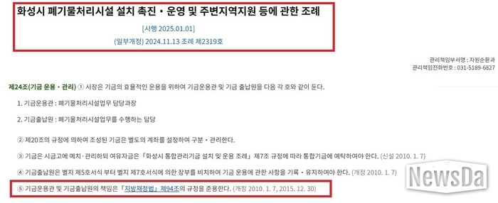 화성시의 '폐기물처리시설 설치 촉진·운영 및 주변지역지원 등에 관한 조례'에서 이미 삭제된 조항이 여전히 포함되어 있어 행정적 혼란이 우려되고 있다.