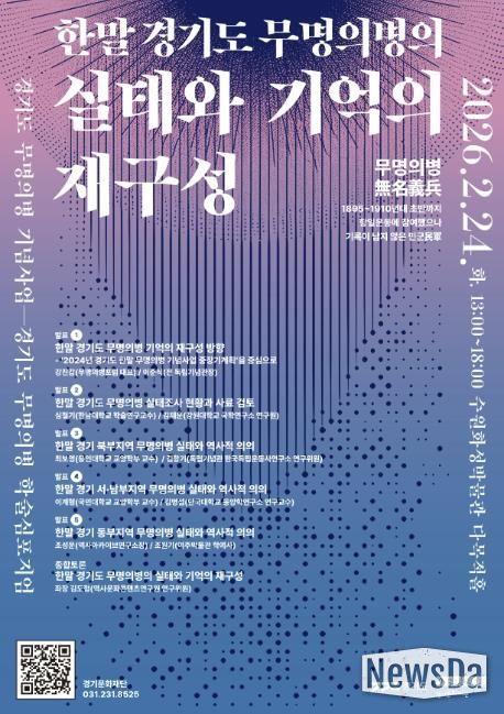 뉴스다 최광묵 기자 | 경기문화재단은 경기도 무명의병 기념사업의 일환으로 제2회 학술심포지엄을 개최한다. '한말 경기도 무명의병의 실태와 기억의 재구성'이라는 주제로 2024년부터 이어온 경기도 31개 시군 무명의병 실태조사 성과를 학술적으로 공론하기 위해 마련됐다.