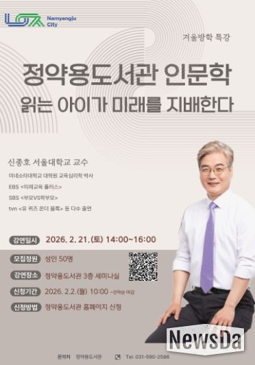 뉴스다 최광묵 기자 | 남양주시는 오는 2월 21일 정약용도서관 3층 세미나실에서 겨울방학 인문학 특강 ‘읽는 아이가 미래를 지배한다’를 개최한다고 9일 밝혔다.