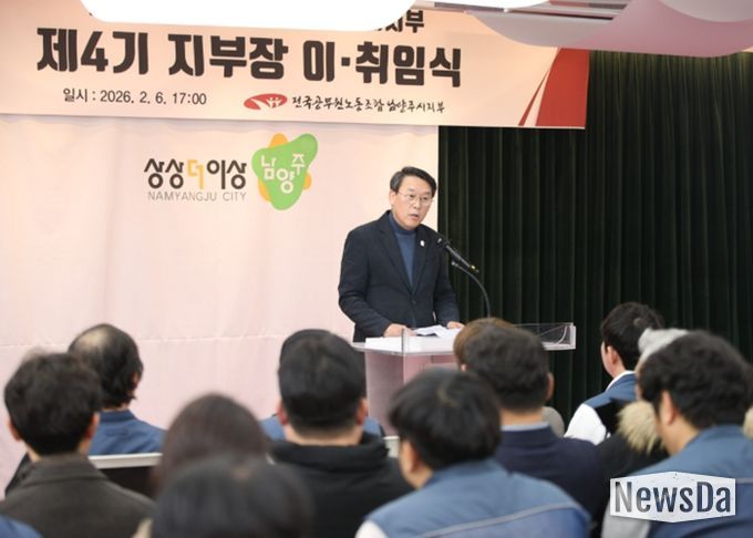 뉴스다 최광묵 기자 | 남양주시는 6일 시청 여유당에서 전국공무원노동조합 남양주시지부가 제4기 지부장 이·취임식을 열었다고 9일 밝혔다.