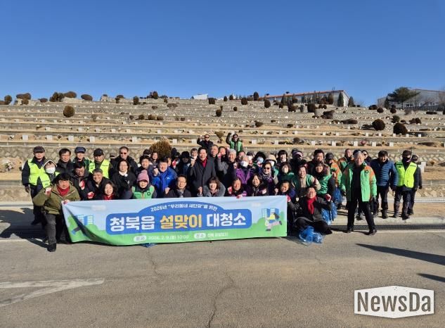 뉴스다 최광묵 기자 | 평택시 청북읍 행정복지센터는 지난 9일 이장협의회, 주민자치회, 새마을남․여지도자, 의용소방대 등 5개 단체 회원과 청북읍 행정복지센터 직원 등 총 60여 명이 참여한 가운데 청북공설공원묘지에서 ‘우리동네 새 단장’을 위한 설맞이 민관합동 대청소를 진행했다.