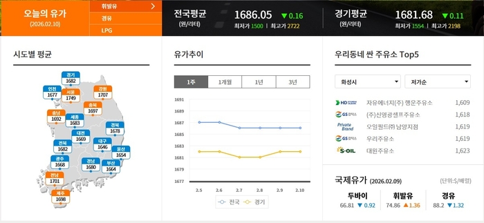 ▲화성시 휘발류 제일 싼 주유소 1609원 자유에너지(주) 행운 주유소