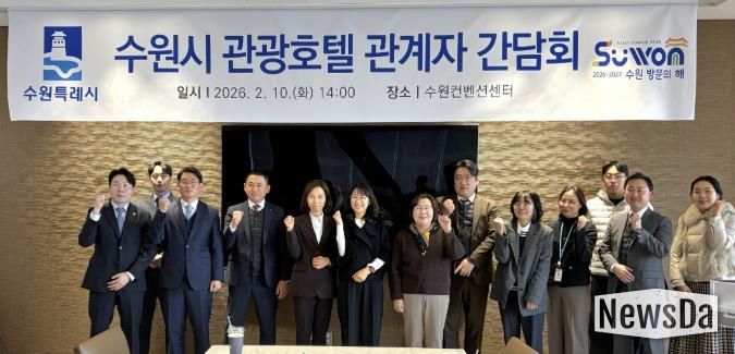 이날 간담회에는 선은임 수원시 문화관광체육국장, 황명희 관광과장 등 수원시 관계자들과 코트야드 메리어트 수원·라마다프라자호텔 수원 등 수원시 8개 관광숙박업체 관계자, 수원컨벤션센터 관계자 등이 참석했다. ‘2026~2027 수원 방문의 해’ 추진 현황, ‘수원 국제회의복합지구’ 지정 현황을 설명한 후 관광숙박업 관계자들과 관광 활성화 방안을 논의했다.
